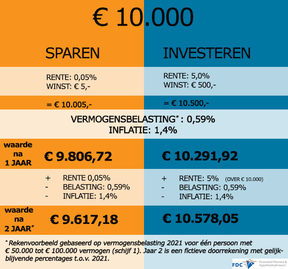 Rekenvoorbeeld investeren vs sparen: